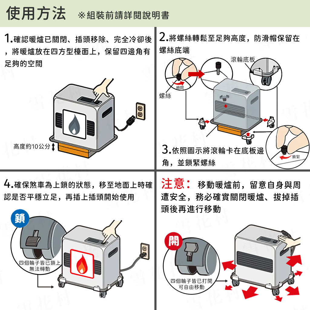 ■ 輕輕一推:再重的暖爐都能輕鬆移動