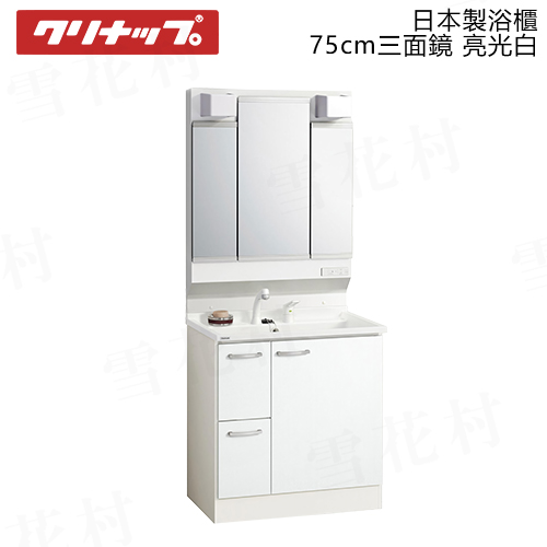 CLEAN UP BGA系列 日本製 75cm 三面鏡+衛浴臉盆+水龍頭+浴櫃【亮光白】