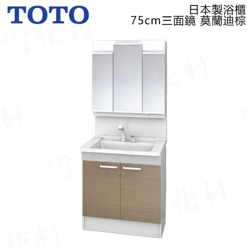TOTO 日本製 75cm 三面鏡+衛浴臉盆 + 水龍頭 + 浴櫃【莫蘭迪棕】