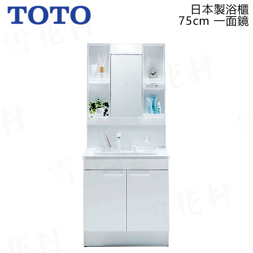 TOTO 日本製 75cm 一面鏡+衛浴臉盆 + 水龍頭 + 浴櫃【白】