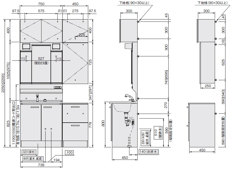 ■ 規格:洗臉台收納櫃(含伸縮式水龍頭) + 三面鏡化妝櫃