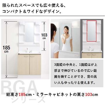 CLEAN UP BGA系列 日本製 75cm 三面鏡+衛浴臉盆+水龍頭+浴櫃【胡桃木色】