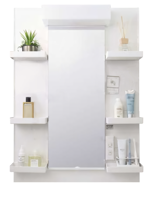 ■ 規格:洗臉台收納櫃(含伸縮式水龍頭) + 一面鏡化妝櫃
