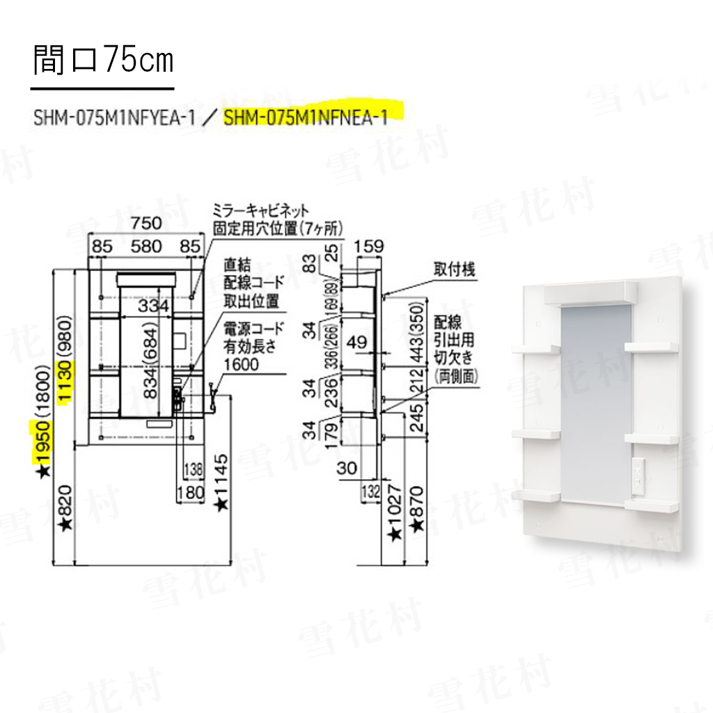 ■ 浴櫃整體尺寸:深度50cm×寬75cm×高195cm