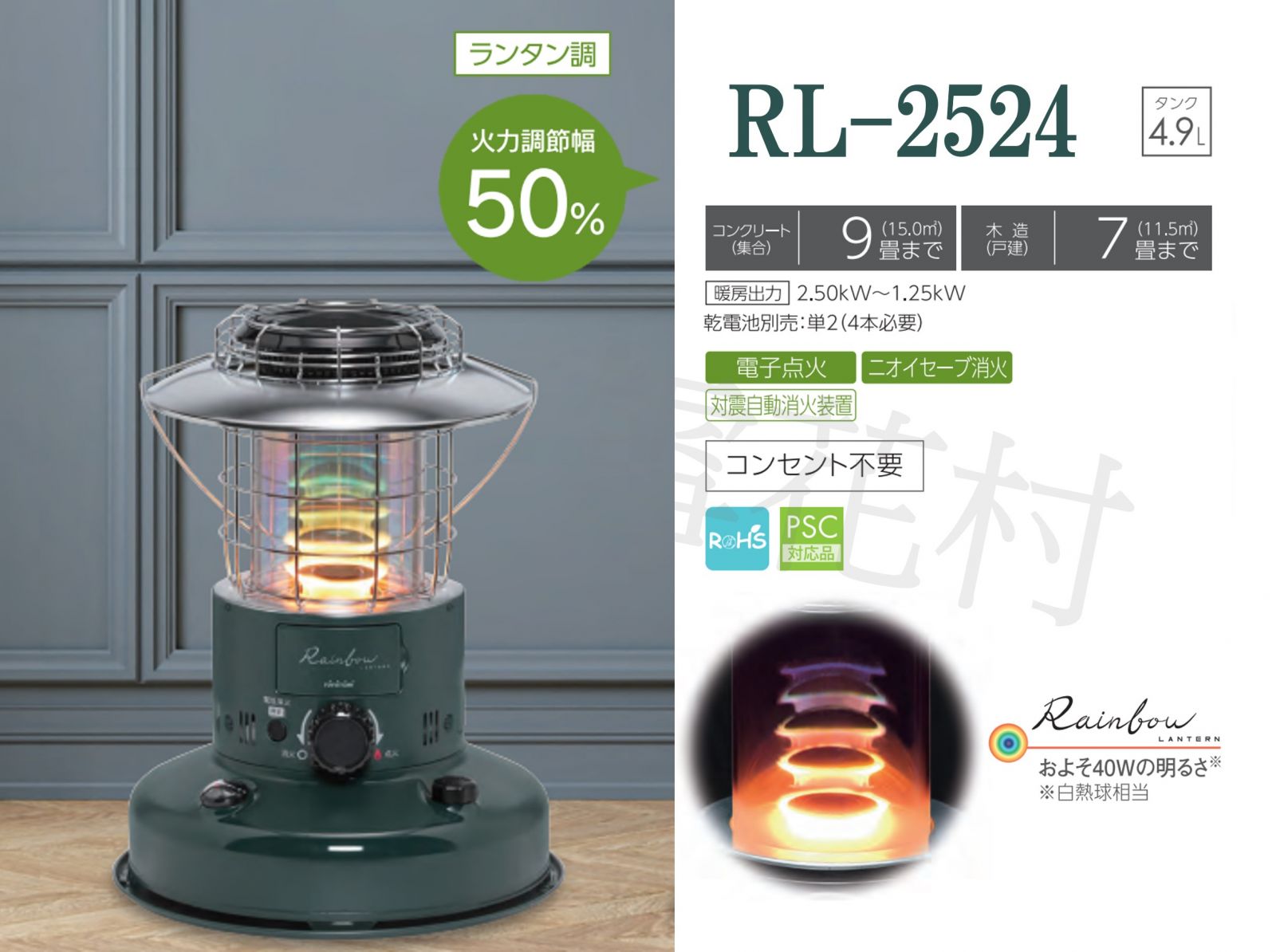【5坪】日本 TOYOTOMI RL-2524 七彩煤油暖爐【綠色】 2024年冬季款