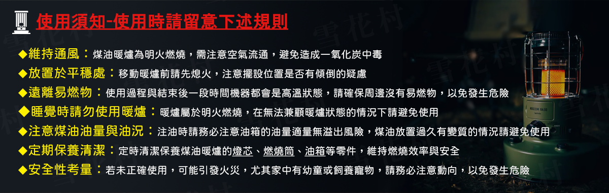 ▪ 使用時,請保持通風,避免一氧化炭中毒