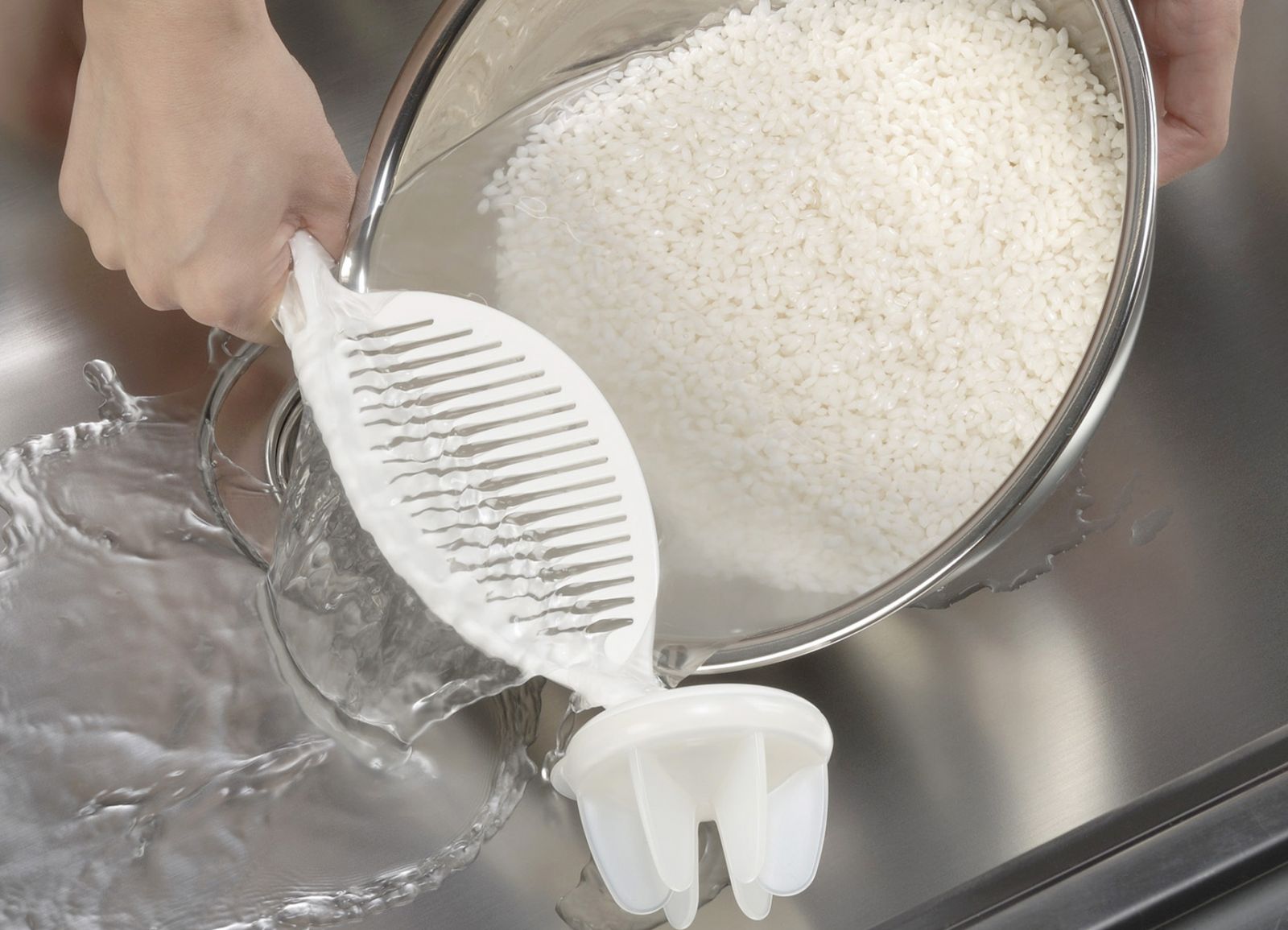 ■ 舒適握柄・吊掛收納・呵護雙手洗米幫手